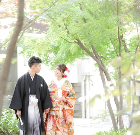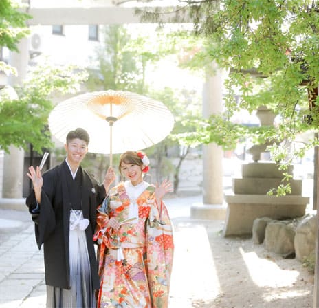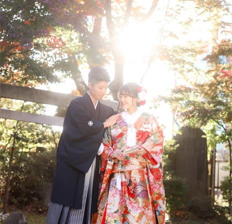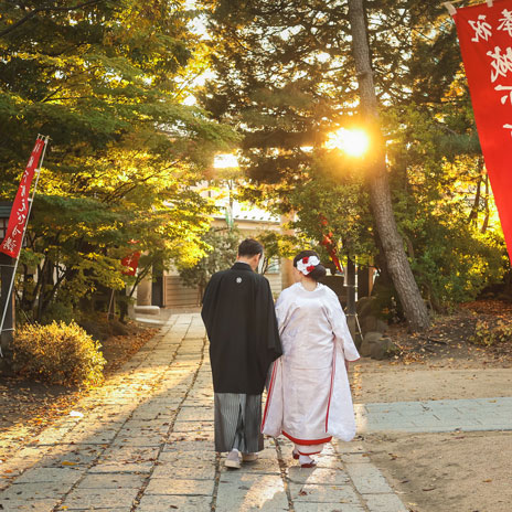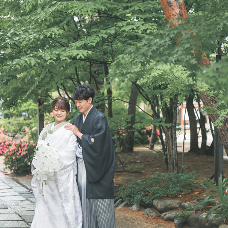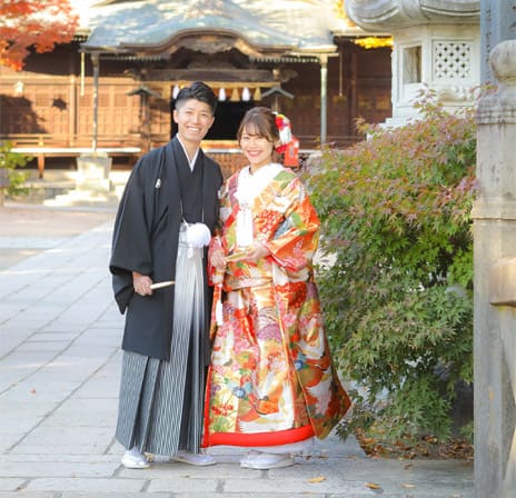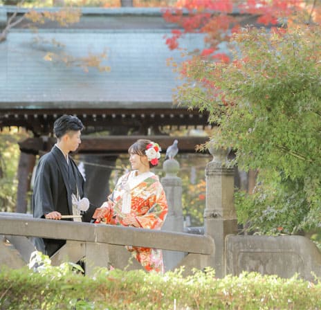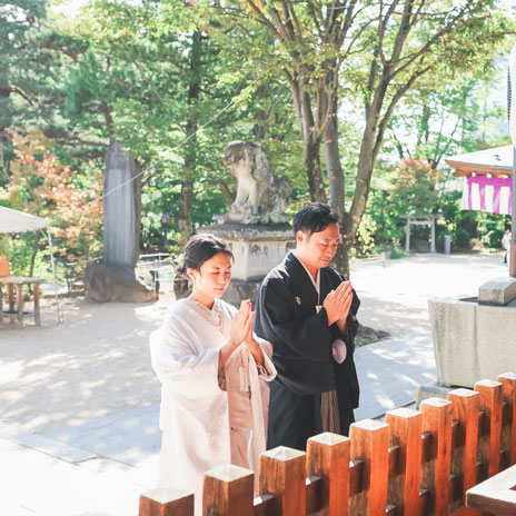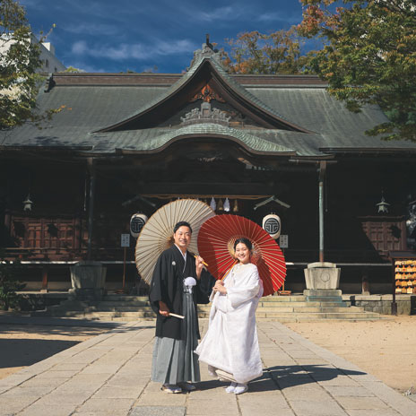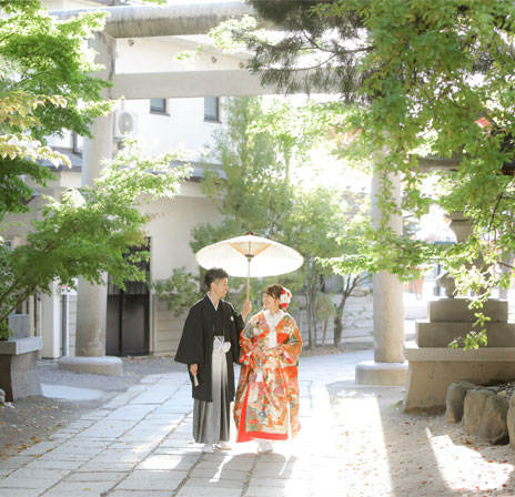 松本結びでは、縁結び神社として名高い長野県松本市の市街地に鎮座する四柱神社での神前結婚式をトータルプロデュースいたします。趣ある社殿で行う和装神前結婚式。衣装・ヘアメイクから写真撮影、会食会場のご案内まで、予算や人数にあわせてお選びいただけます。格式高い婚礼写真から、思い出に残るフォトウェディングや前撮り写真など、フォトスタジオだからこそできるご提案があります。